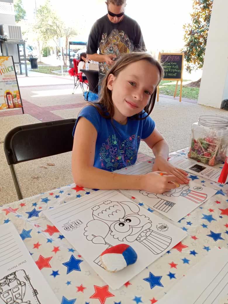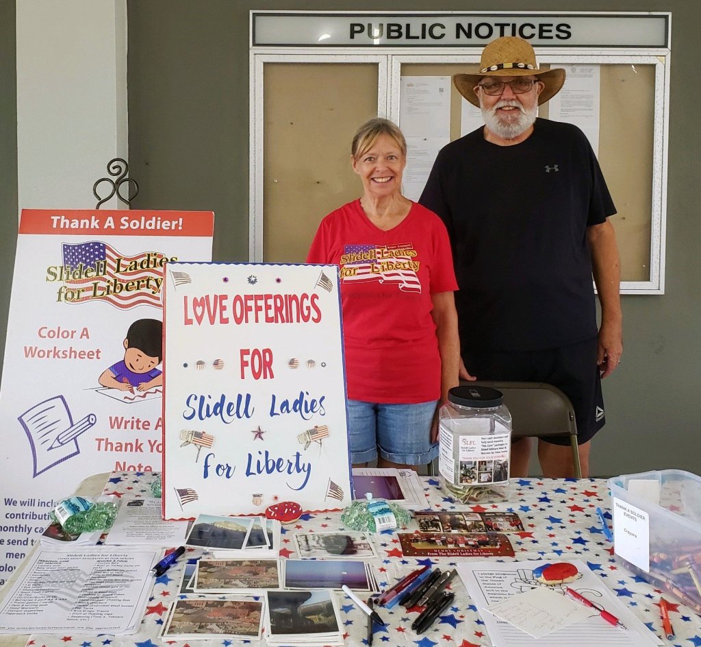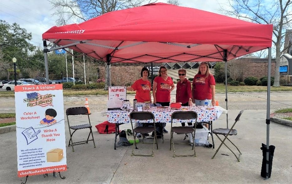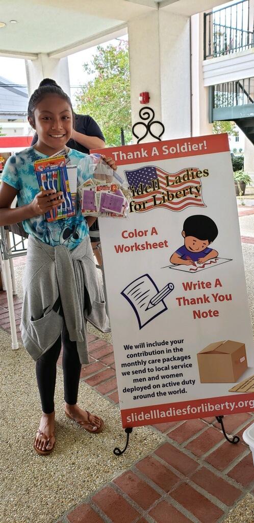 Slidell Ladies for Liberty provides opportunities for the community to Thank-A-Soldier with fun coloring sheets and heart-felt post card Thank You Notes. We attend various community events to collect these tokens of appreciation for our military men and women and include them in the boxes we send.